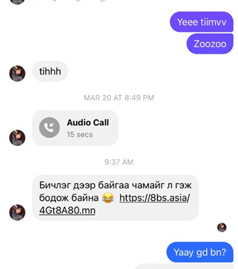"Бичлэг дээрх хүнийг чамайг л гэж бодлоо" гэх зэрэг холбоос илгээж 40 сая төгрөг залилжээ